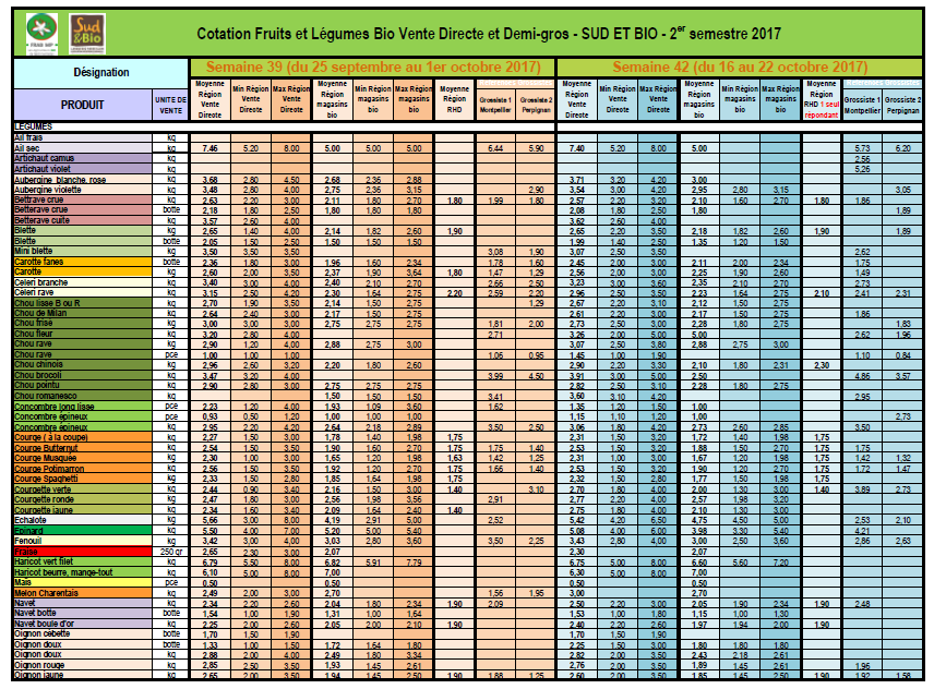 Les cotations en vente directe et demi-gros en Occitanie