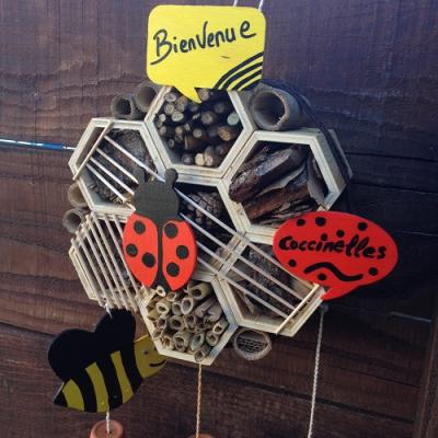 Installation d'un hôtel à insectes pour accueillir les petites bêtes dans son jardin.