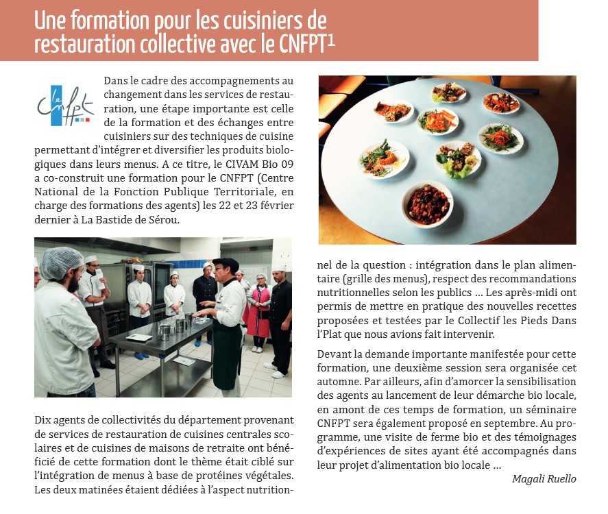 Depuis de nombreuses années, ERABLES 31 et le CIVAM BIO 09 répondent aux nombreuses sollicitations des établissements souhaitant intégrer des produits biologiques locaux dans leurs restaurants collectifs.